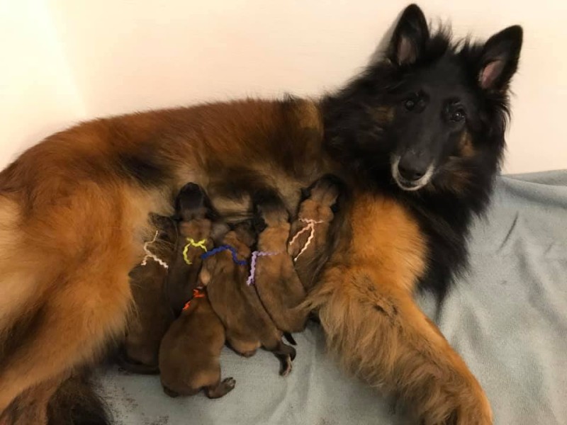 Madison had 4 boys and 2 girls, born May 8, 2020. Daddy is the talented and handsome "Echo" (Dzurath x Trixie, bred by Debbie Deuth and owned by Susan Young). We could not be happier with these puppies! Congratulations to all their new owners, and welcome to the family! These are sound, stable pups that can excel in both the breed and performance rings, and be great companions, too!